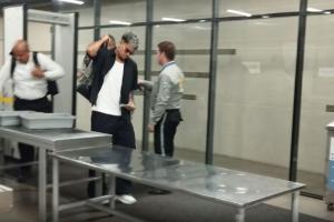 在哥伦比亚巴兰基亚机场,迪亚斯被拍到背着背包,穿着夹克,戴着墨镜,独自一人通过机场安检去搭乘飞机。